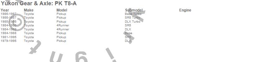 Below is an abreviated list of applications for the Pinion Install Kit.