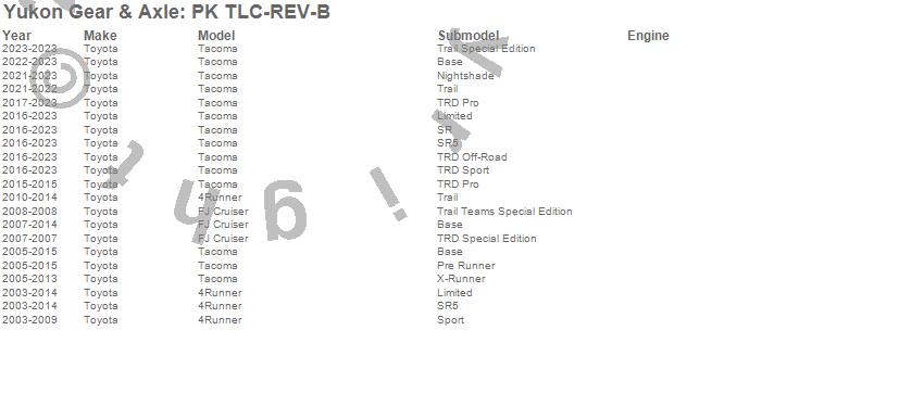 Yukon Gear & Axle Pinion Install Kit # PK TLC-REV-B - 8 in. - Incl. Timken Pinion Bearings/Races/Pilot Bearing If Applicable/Crush Sleeve If Applicable
