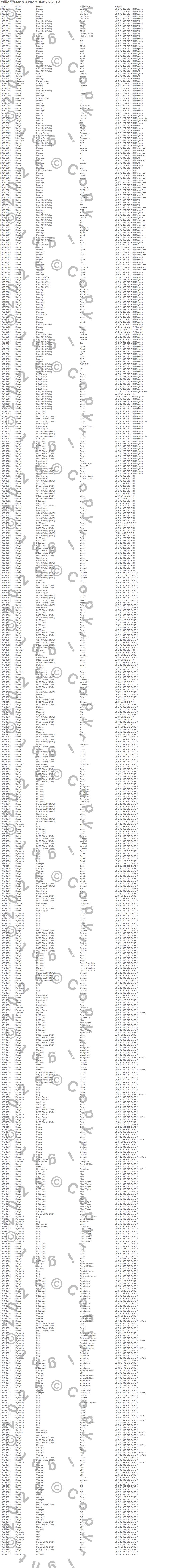 Below is an abreviated list of applications for the Yukon Dura Grip Differential.