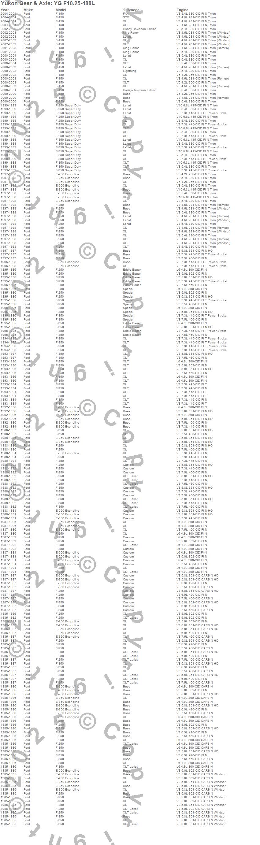 Yukon Gear & Axle Ring And Pinion Gear Set # YG F10.25-488L - 10.25 in. 12 Bolt - 10.5 in. 14 Bolt - Rear - 4.88 Ratio