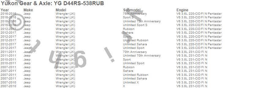 Yukon Gear & Axle Ring And Pinion Gear Set YG D44RS-538RUB Features: