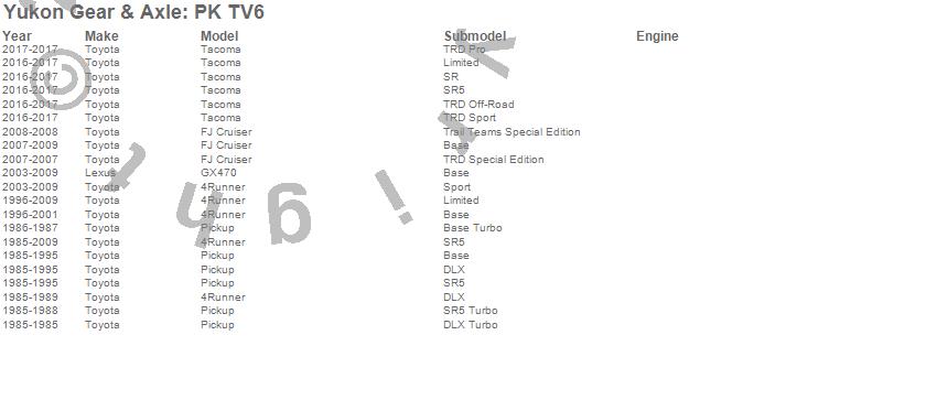 Below is an abreviated list of applications for the Pinion Install Kit.