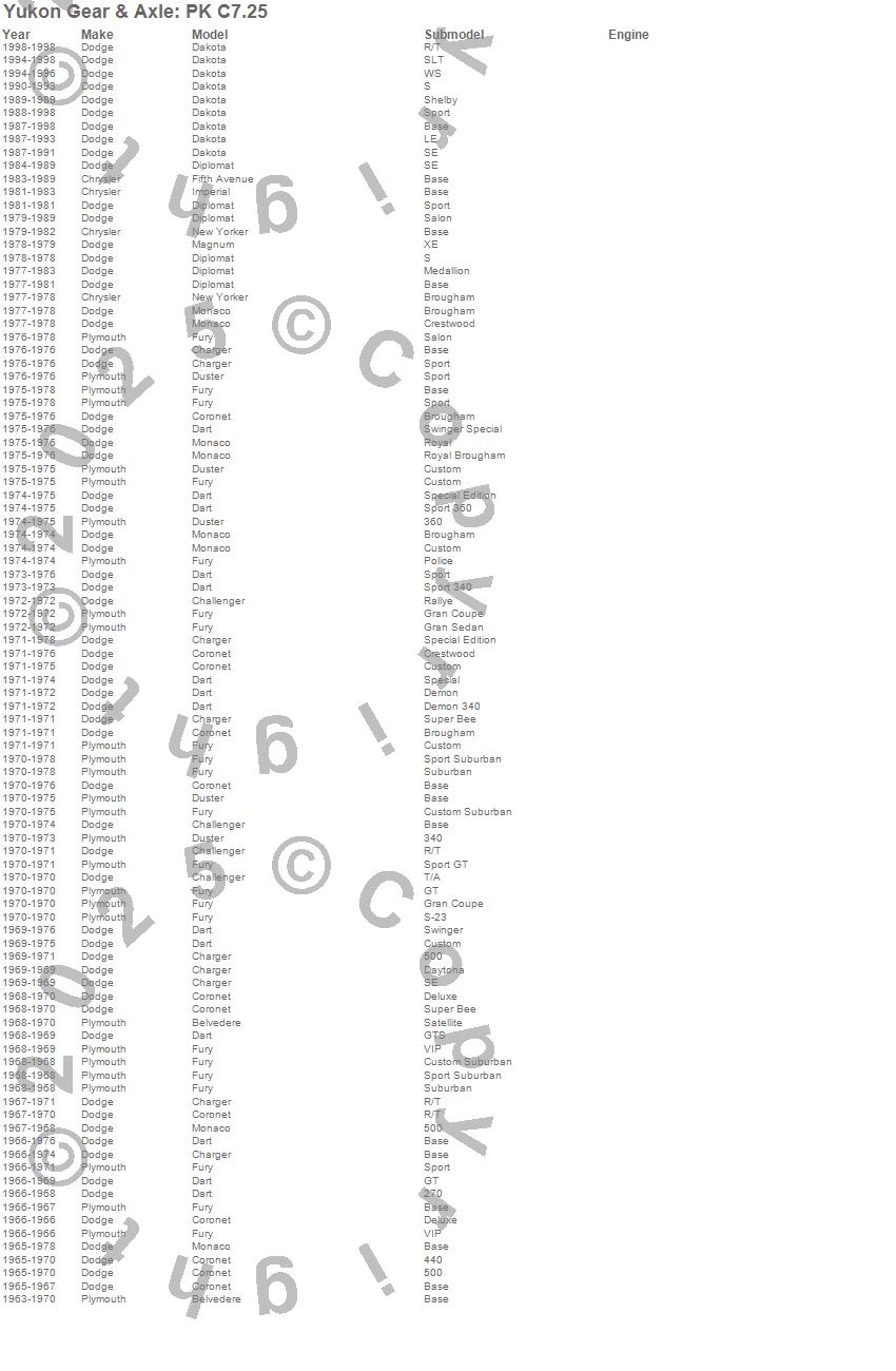 Below is an abreviated list of applications for the Pinion Install Kit.