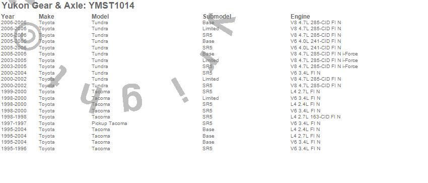 Below is an abreviated list of applications for the Yukon Mighty Axle Seal.
