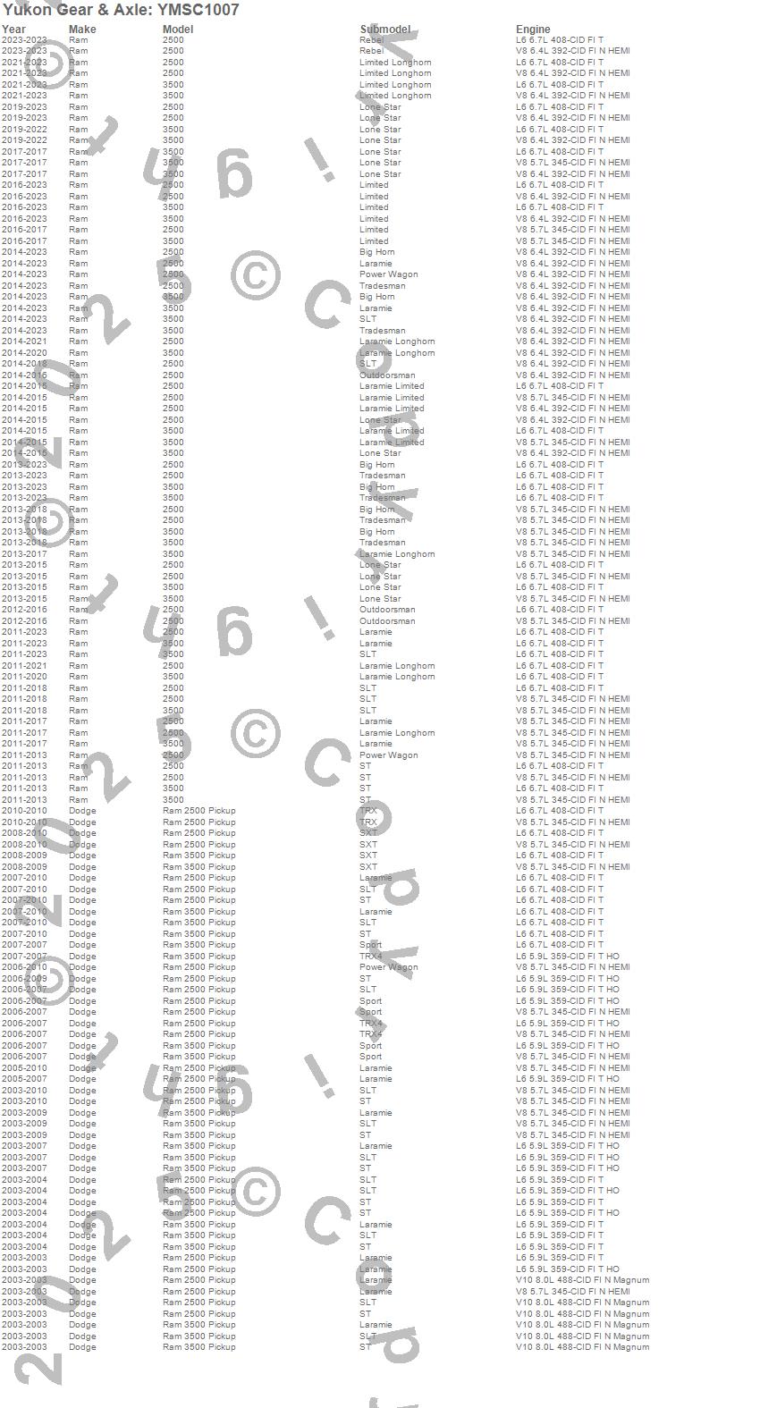 Below is an abreviated list of applications for the Yukon Mighty Axle Seal.