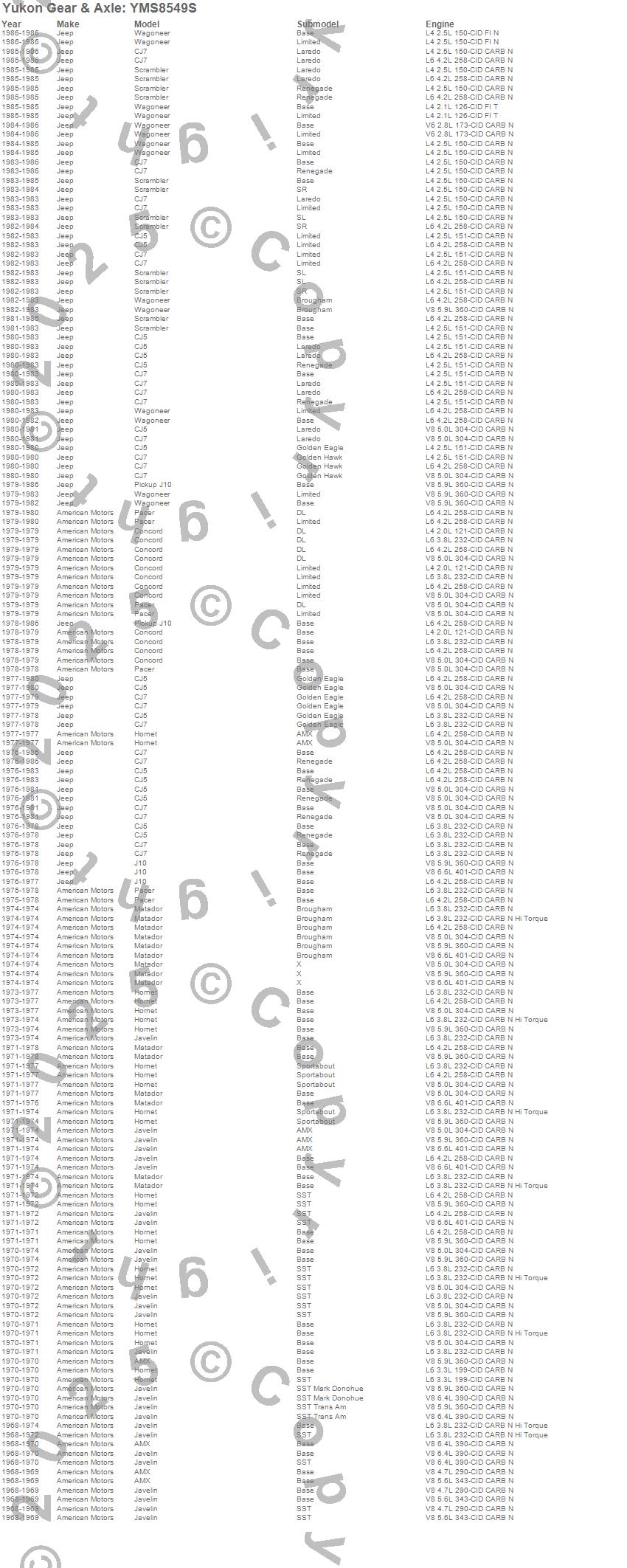 Below is an abreviated list of applications for the Yukon Mighty Axle Seal.