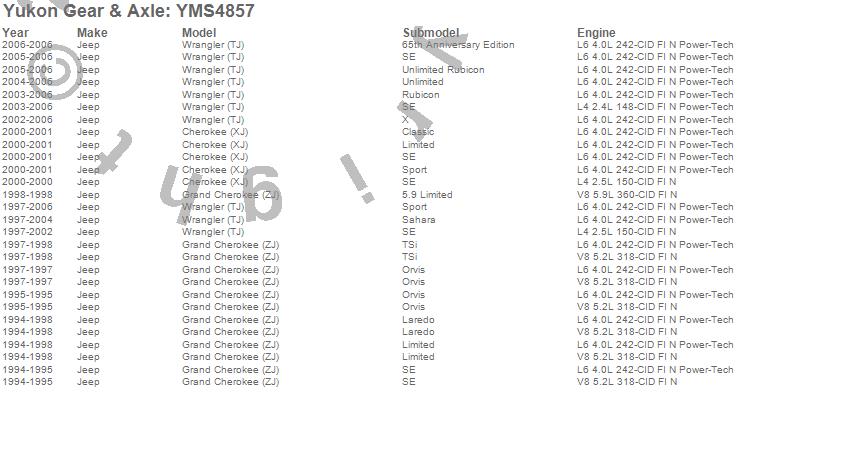 Below is an abreviated list of applications for the Yukon Mighty Axle Seal.