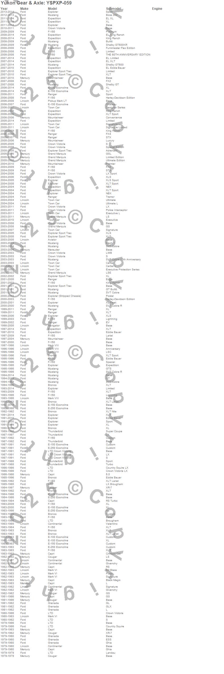 Aviator, Bronco, Capri, Continental, Cougar, E-100 Econoline, E-100 Econoline Club Wagon, E-150 Econoline, E-150 Econoline Club Wagon, E-250 Econoline, E-250 Econoline Club Wagon, Expedition, Explorer, Explorer Sport Trac, F-150, F-150 Heritage, Granada, Grand Marquis, LTD, LTD Crown Victoria more…