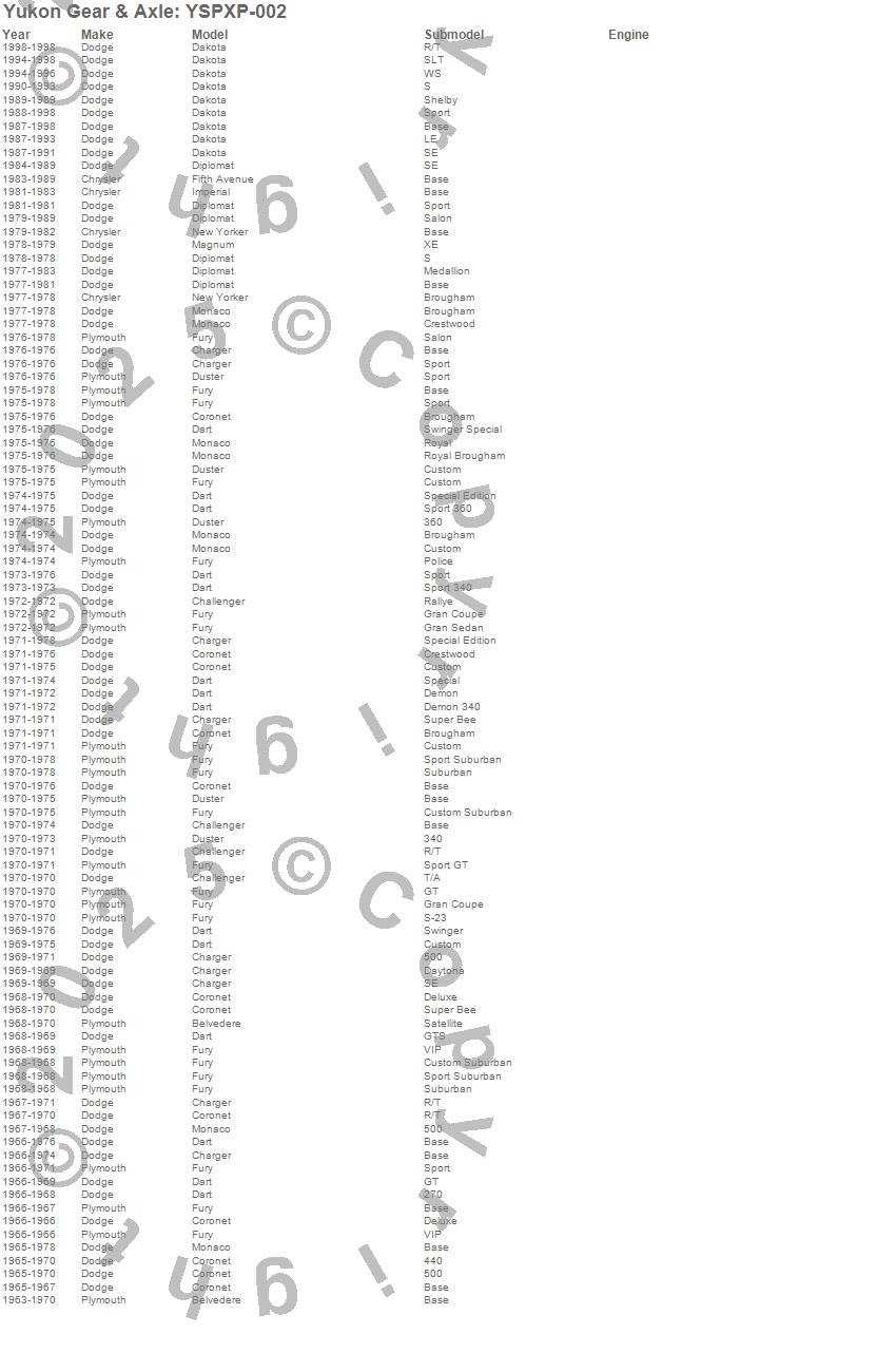 Belvedere, Belvedere II, Challenger, Charger, Coronet, Dakota, Dart, Diplomat, Durango, Duster, Fifth Avenue, Fury, Imperial, Magnum, Monaco, New Yorker, Chrysler, Dodge, Plymouth, 1998 more…