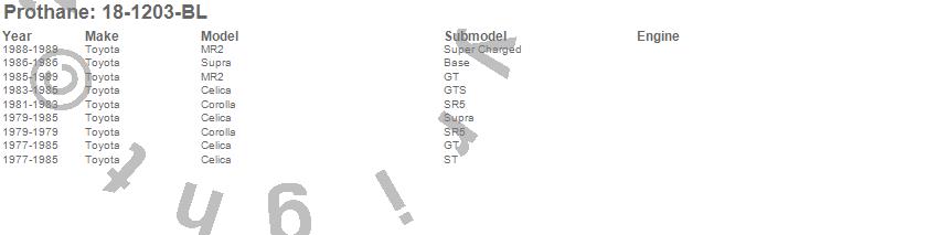 Below is an abreviated list of applications for the Strut Rod Bushing Kit. Celica, Corolla, MR2, Supra, Toyota, 1989, 1988, 1987, 1986, 1985, 1984, 1983, 1982, 1981, 1980, 1979, 1978, 1977 more…