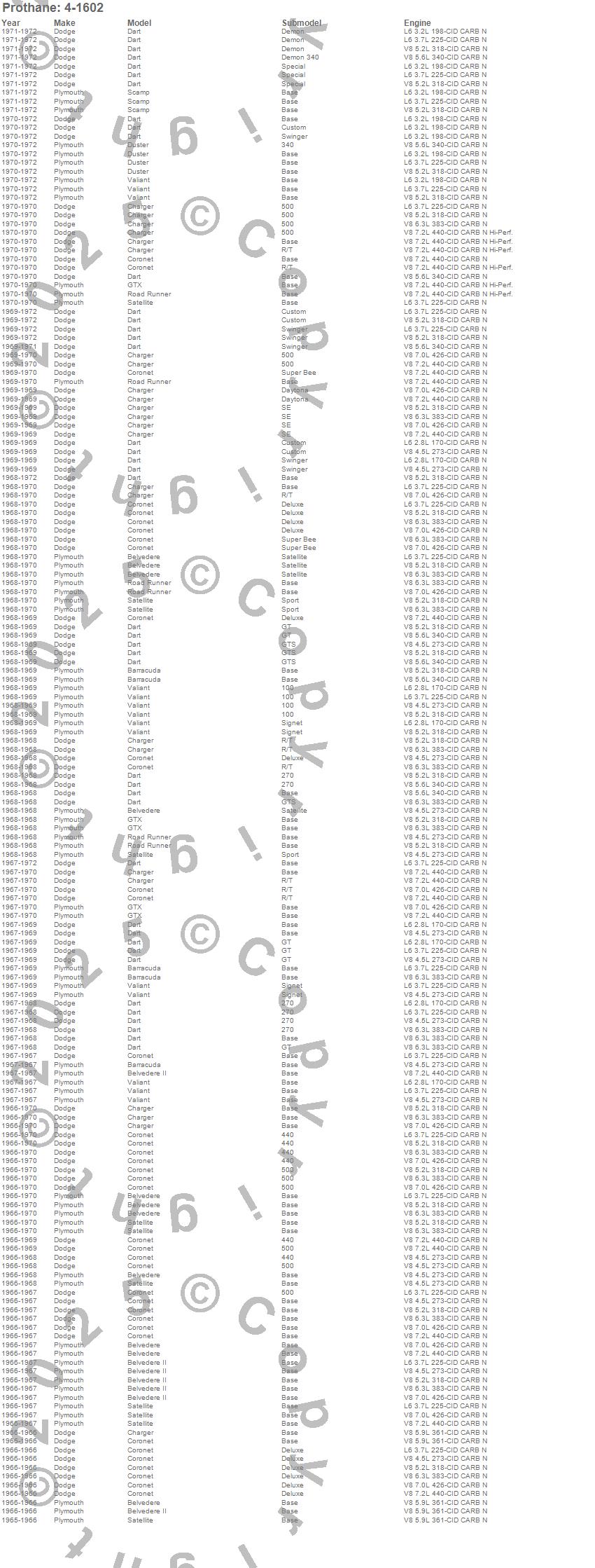 Barracuda, Belvedere, Belvedere II, Charger, Coronet, Dart, Duster, GTX, Road Runner, Satellite, Scamp, Valiant, Dodge, Plymouth, 1972, 1971, 1970, 1969, 1968, 1967 more…