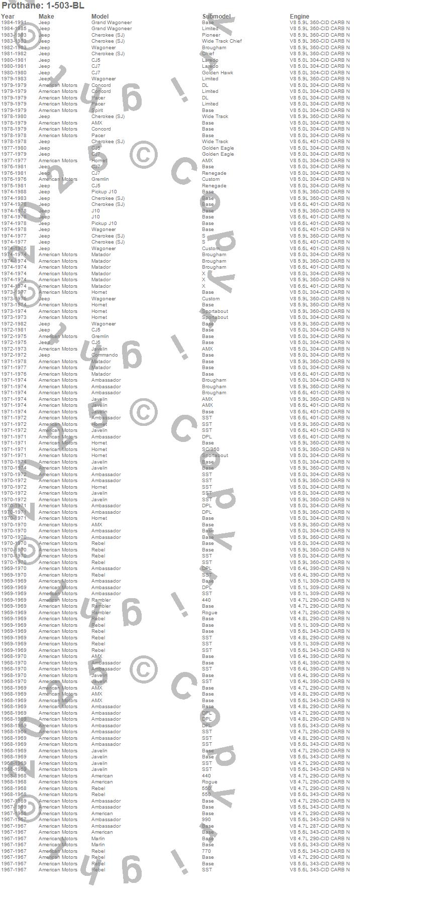 Ambassador, American, AMX, Cherokee (SJ), CJ5, CJ6, CJ7, Concord, DJ5C, Grand Wagoneer, Gremlin, Hornet, J10, Javelin, Jeepster, Marlin, Matador, Pacer, Rambler, Rebel more…