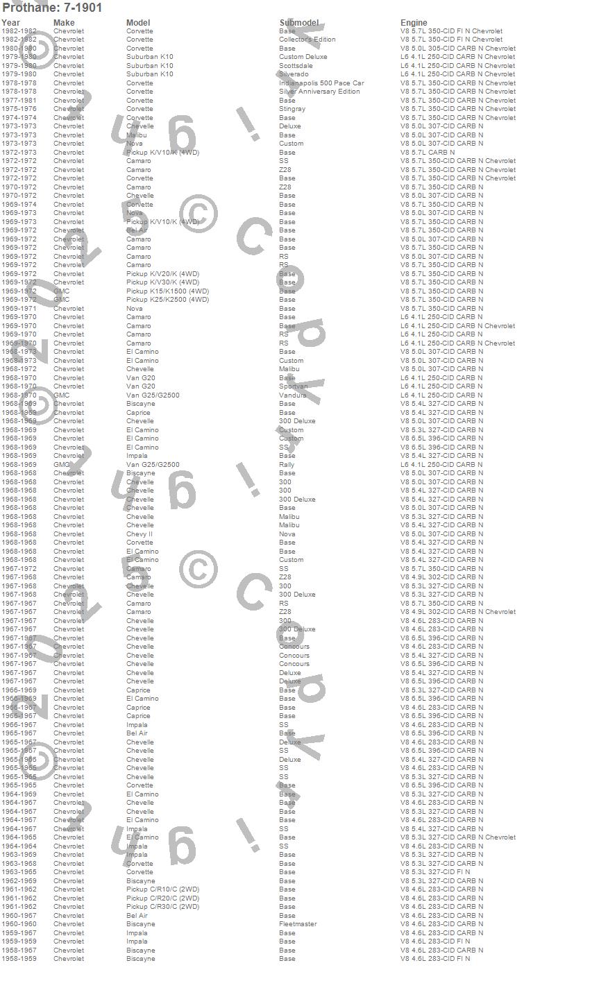 Bel Air, Biscayne, C10 Pickup, C20 Pickup, C30 Pickup, Camaro, Caprice, Chevelle, Chevy II, Corvette, El Camino, G20 Van, G25/G2500 Van, Impala, K10 Pickup, K10 Suburban, K15/K1500, K20 Pickup, K25/K2500 Pickup, K30 Pickup more…