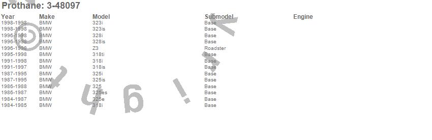 Below is an abreviated list of applications for the Radius Rod Bushing Kit. 318i, 318is, 318ti, 323iC, 323is, 325, 325e, 325es, 325i, 325is, 328i, 328is, Z3, BMW, 1998, 1997, 1996, 1995, 1994, 1993 more…