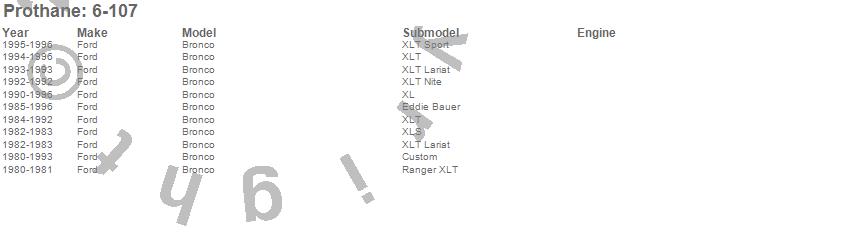 Below is an abreviated list of applications for the Body And Cab Mount Bushing Kit. Bronco, Ford, 1996, 1995, 1994, 1993, 1992, 1991, 1990, 1989, 1988, 1987, 1986, 1985, 1984, 1983, 1982, 1981, 1980 more…