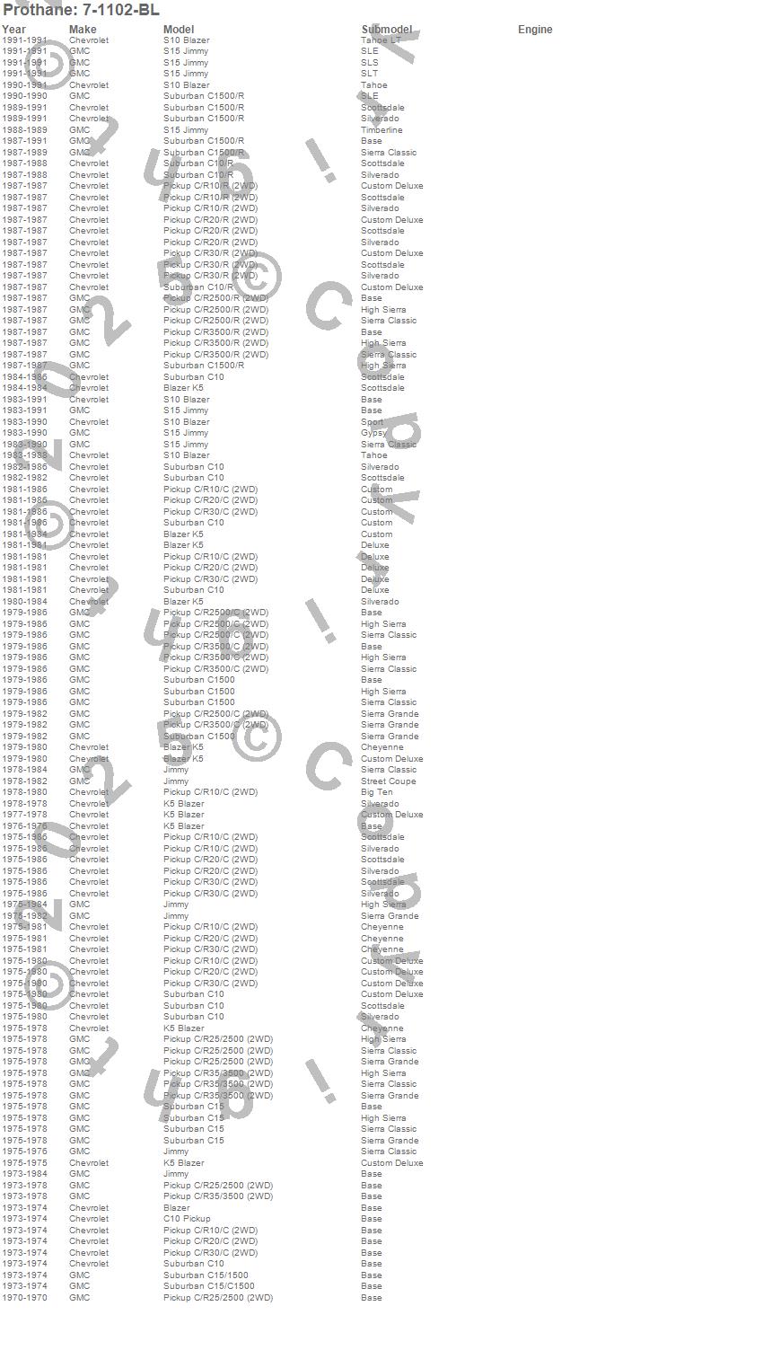 Blazer, Blazer K5, C10 Pickup, C10 Suburban, C15 Suburban, C15/C1500 Suburban, C1500 Suburban, C20 Pickup, C25/C2500 Pickup, C2500 Pickup, C30 Pickup, C35/C3500 Pickup, C3500 Pickup, Jimmy, R10 Pickup, R10 Suburban, R1500 Suburban, R20 Pickup, R2500 Pickup, R30 Pickup more…