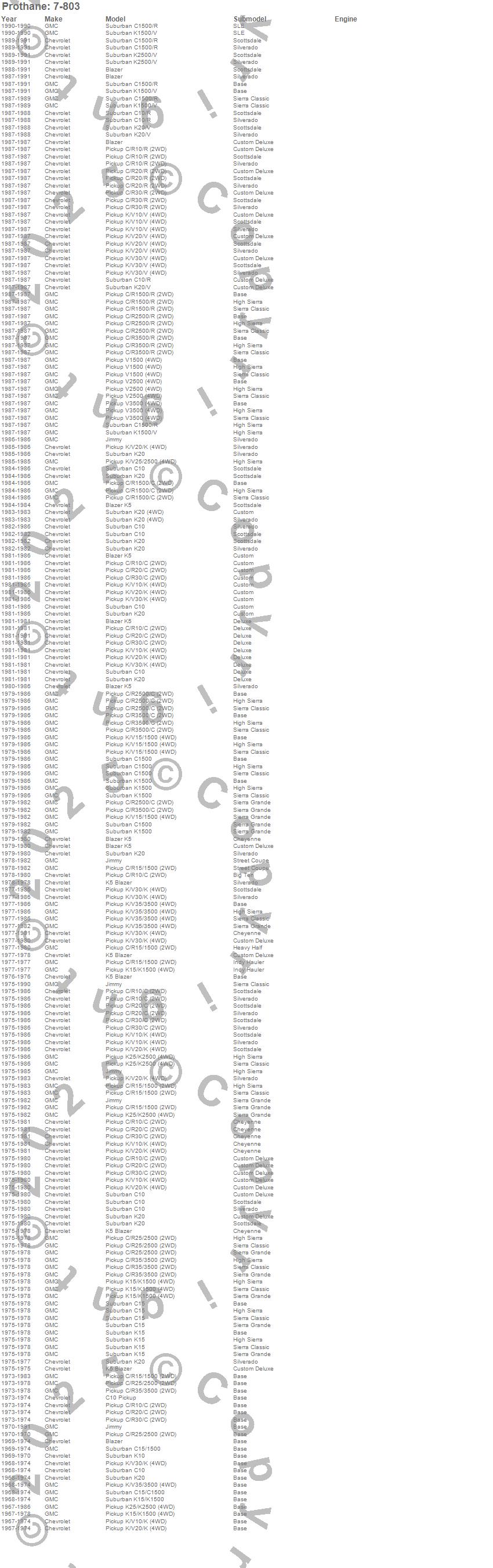 Blazer, Blazer K5, C10 Pickup, C10 Suburban, C15 Suburban, C15/C1500, C15/C1500 Suburban, C1500, C1500 Suburban, C20 Pickup, C25/C2500 Pickup, C2500 Pickup, C30 Pickup, C35/C3500 Pickup, C3500 Pickup, Jimmy, K10 Pickup, K10 Suburban, K15 Suburban, K15/K1500 more…