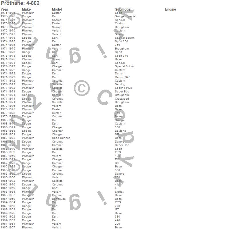 Barracuda, Charger, Coronet, Dart, Duster, Road Runner, Satellite, Scamp, Valiant, Dodge, Plymouth, 1976, 1975, 1974, 1973, 1972, 1971, 1970, 1969, 1968 more…