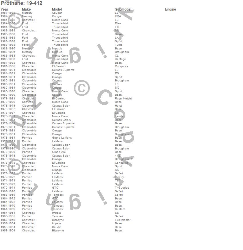 Bel Air, Biscayne, Cougar, Cutlass, Cutlass Calais, Cutlass Salon, Cutlass Supreme, El Camino, Grand Am, Grand LeMans, GTO, Impala, LeMans, Marquis, Monte Carlo, Omega, Tempest, Thunderbird, Chevrolet, Ford more…