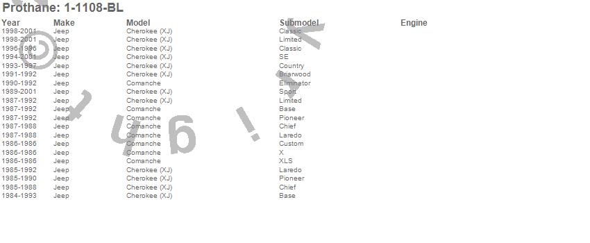 Cherokee (XJ), Comanche, Jeep, 2001, 2000, 1999, 1998, 1997, 1996, 1995, 1994, 1993, 1992, 1991, 1990, 1989, 1988, 1987, 1986, 1985 more…