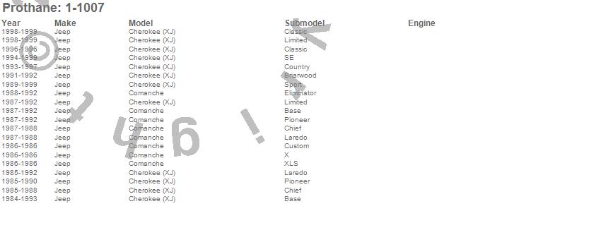 Cherokee (XJ), Comanche, Jeep, 1999, 1998, 1997, 1996, 1995, 1994, 1993, 1992, 1991, 1990, 1989, 1988, 1987, 1986, 1985, 1984 more…