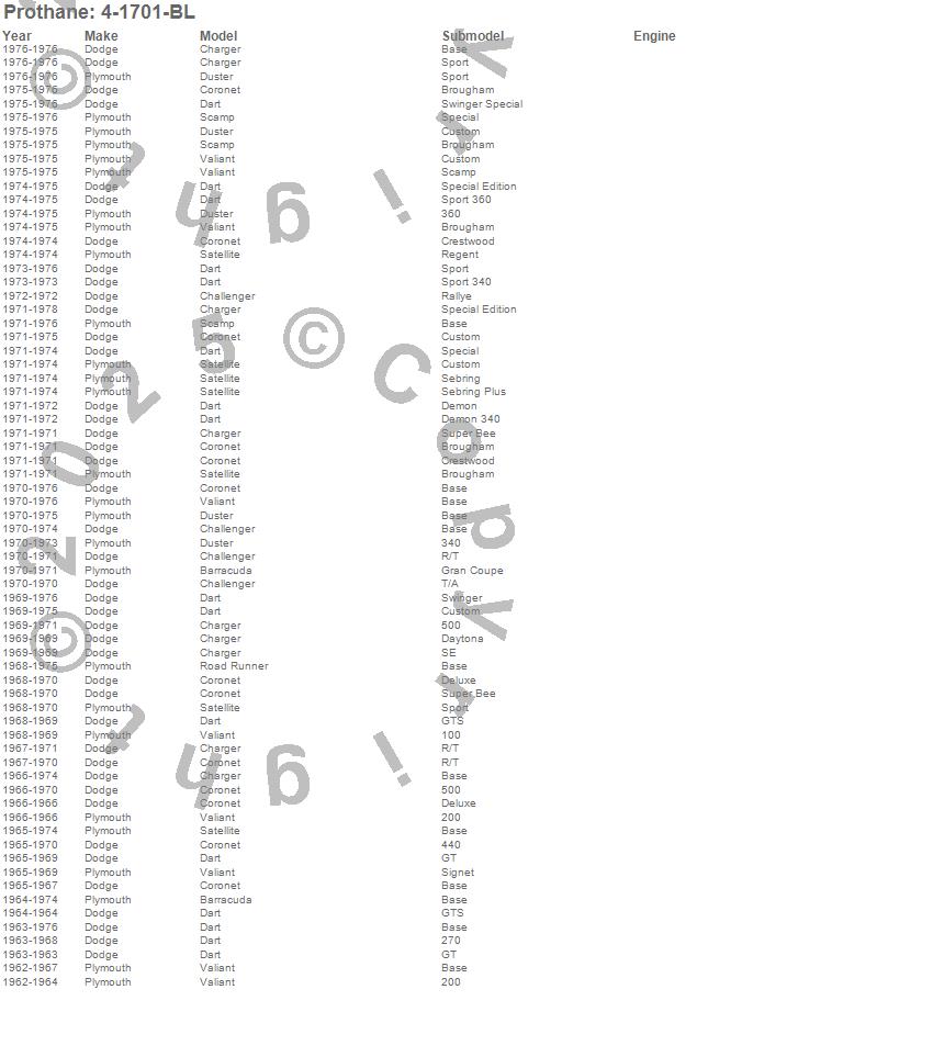 Barracuda, Challenger, Charger, Coronet, Dart, Duster, Road Runner, Satellite, Scamp, Valiant, Dodge, Plymouth, 1978, 1977, 1976, 1975, 1974, 1973, 1972, 1971 more…