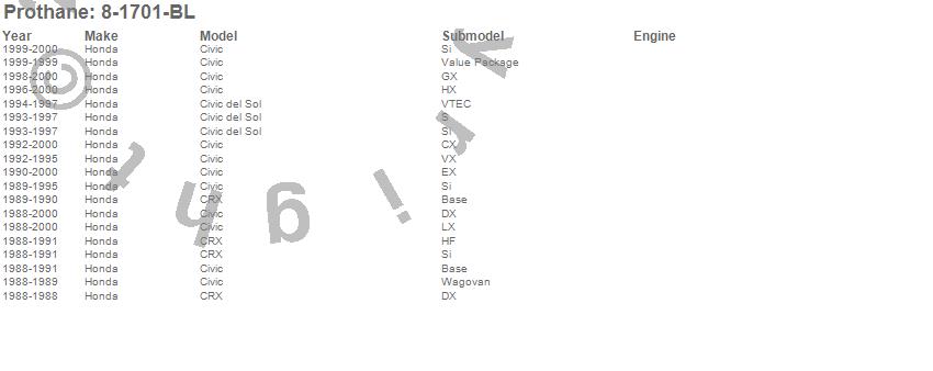 Below is an abreviated list of applications for the Ball Joint Boot Kit. Civic, Civic del Sol, CRX, Honda, 2000, 1999, 1998, 1997, 1996, 1995, 1994, 1993, 1992, 1991, 1990, 1989, 1988 more…