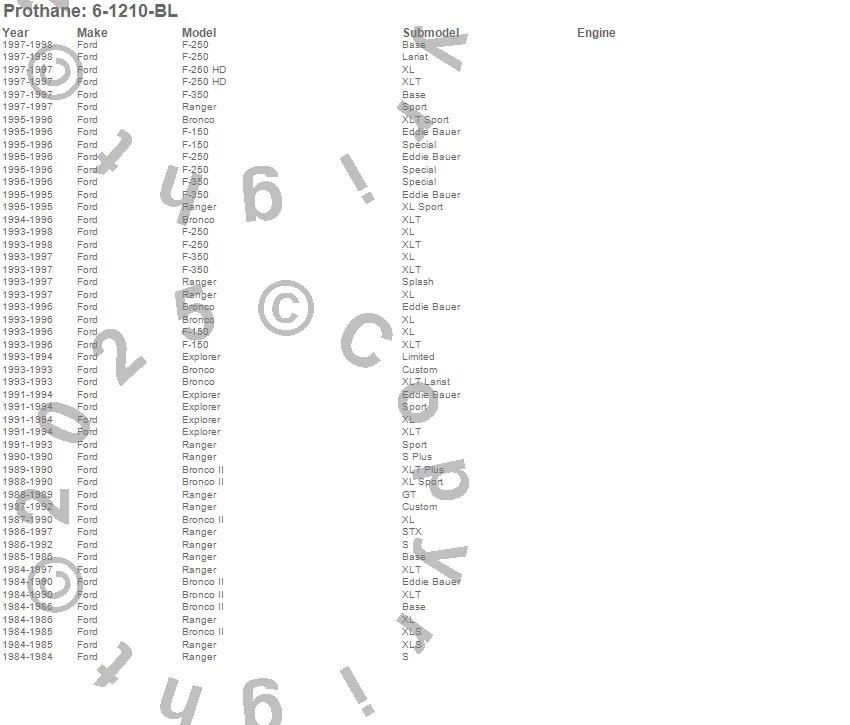 Below is an abreviated list of applications for the Radius Arm Bushing Kit. Bronco, Bronco II, Explorer, F-150, F-250, F-350, Ranger, Ford, 1998, 1997, 1996, 1995, 1994, 1993, 1992, 1991, 1990, 1989, 1988, 1987 more…