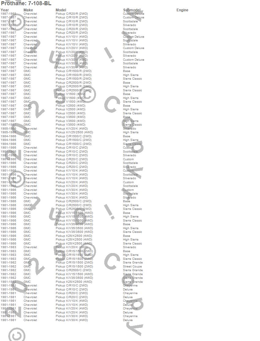 C10 Pickup, C15/C1500, C1500, C20 Pickup, C2500 Pickup, K10 Pickup, K1500, K20 Pickup, K2500 Pickup, K30 Pickup, K3500 Pickup, R10 Pickup, R1500 Pickup, R20 Pickup, R2500 Pickup, V10 Pickup, V1500 Pickup, V20 Pickup, V2500 Pickup, V30 Pickup more…