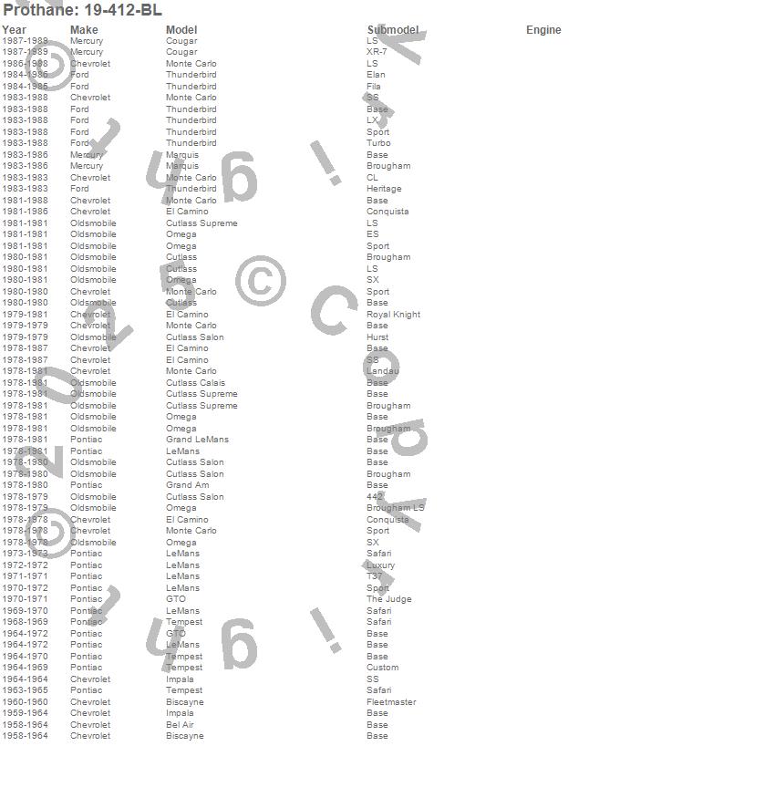 Bel Air, Biscayne, Cougar, Cutlass, Cutlass Calais, Cutlass Salon, Cutlass Supreme, El Camino, Grand Am, Grand LeMans, GTO, Impala, LeMans, Marquis, Monte Carlo, Omega, Tempest, Thunderbird, Chevrolet, Ford more…