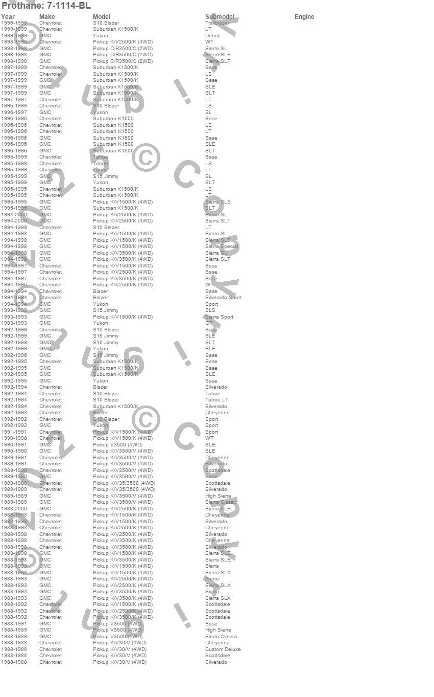 Blazer, C3500 Pickup, Jimmy, K1500, K1500 Pickup, K1500 Suburban, K2500 Pickup, K3500 Pickup, S10 Blazer, S10 Blazer (Canadian), S15 Jimmy, Tahoe, V30 Pickup, V3500 Pickup, Yukon, Chevrolet, GMC, 2000, 1999, 1998 more…