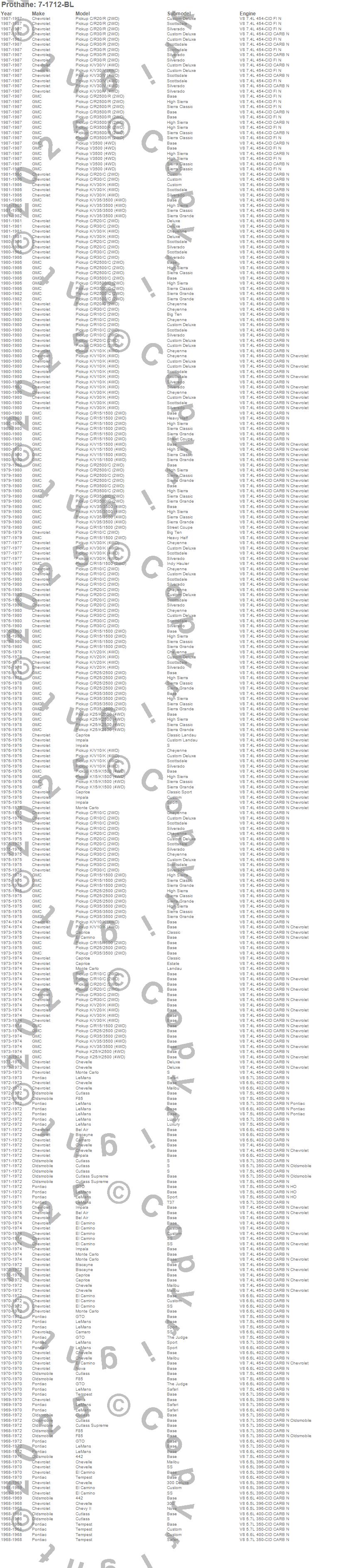 442, Bel Air, Biscayne, C10 Pickup, C15/C1500, C1500, C20 Pickup, C25/C2500 Pickup, C2500 Pickup, C30 Pickup, C35/C3500 Pickup, C3500 Pickup, Camaro, Caprice, Chevelle, Chevy II, Cutlass, Cutlass Supreme, El Camino, F85 more…