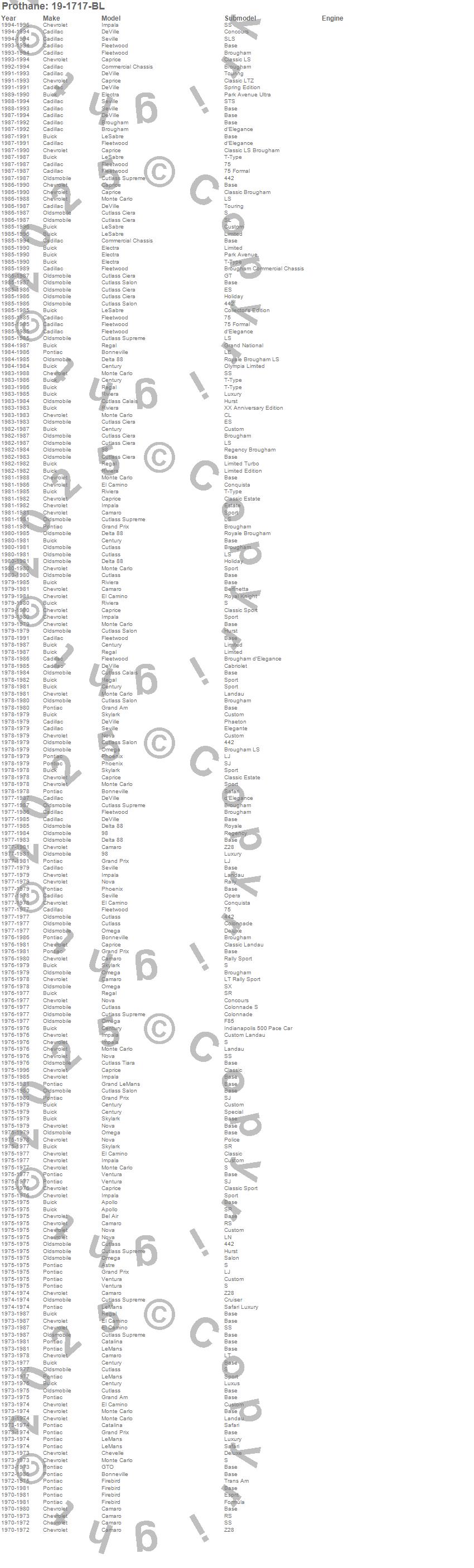 98, Apollo, Astre, Bel Air, Bonneville, Brougham, Camaro, Caprice, Catalina, Century, Chevelle, Commercial Chassis, Cutlass, Cutlass Calais, Cutlass Ciera, Cutlass Salon, Cutlass Supreme, Cutlass Tiara, Delta 88, DeVille more…
