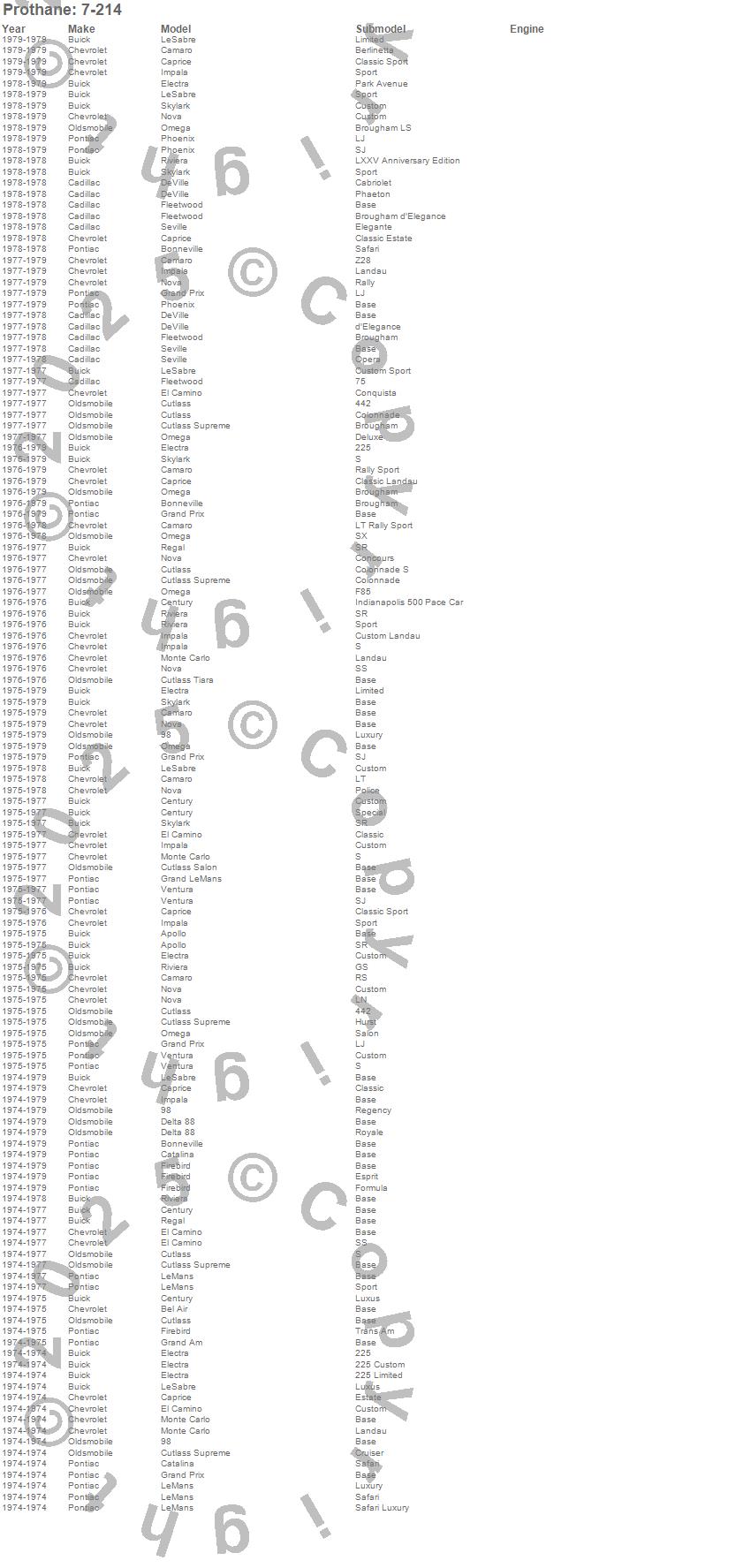 98, Apollo, Bel Air, Bonneville, Camaro, Caprice, Catalina, Century, Cutlass, Cutlass Salon, Cutlass Supreme, Cutlass Tiara, Delta 88, DeVille, El Camino, Electra, Firebird, Fleetwood, Grand Am, Grand LeMans more…