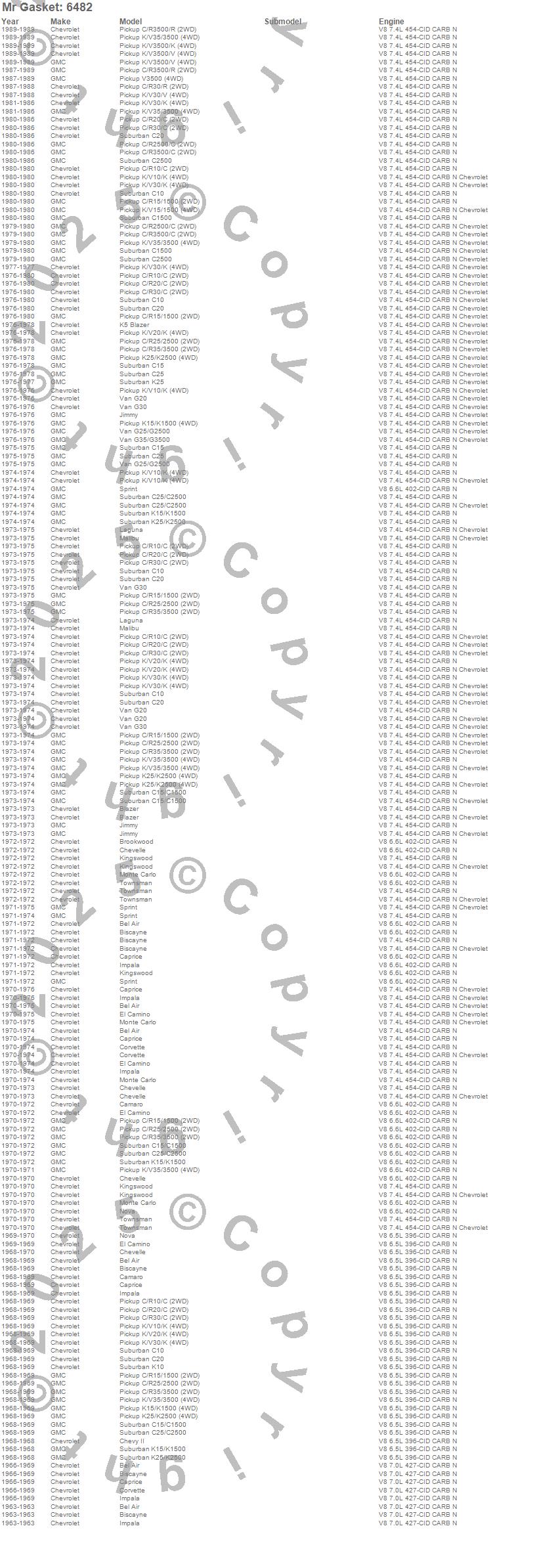 Bel Air, Biscayne, Blazer, Blazer K5, Brookwood, C10 Pickup, C10 Suburban, C15 Suburban, C15/C1500, C15/C1500 Suburban, C1500, C1500 Suburban, C20 Pickup, C20 Suburban, C25 Suburban, C25/C2500 Pickup, C25/C2500 Suburban, C2500 Pickup, C2500 Suburban, C30 Pickup more…
