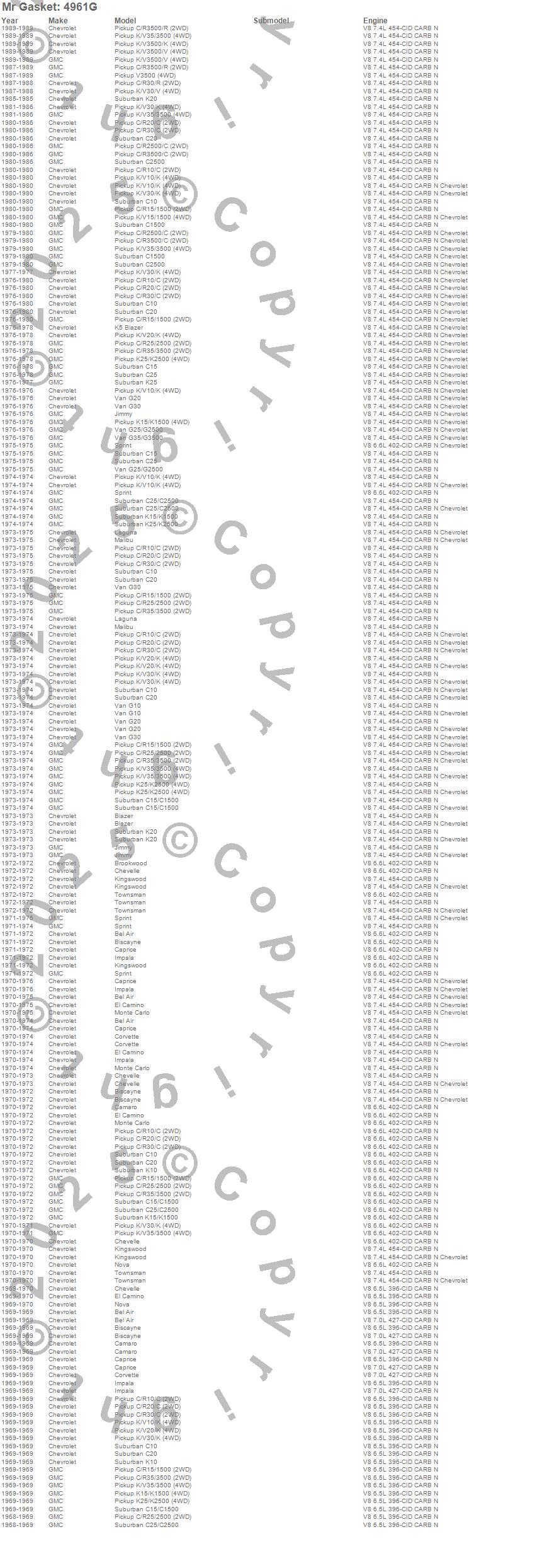 Bel Air, Biscayne, Blazer, Blazer K5, Brookwood, C10 Pickup, C10 Suburban, C15 Suburban, C15/C1500, C15/C1500 Suburban, C1500, C1500 Suburban, C20 Pickup, C20 Suburban, C25 Suburban, C25/C2500 Pickup, C25/C2500 Suburban, C2500 Pickup, C2500 Suburban, C30 Pickup more…