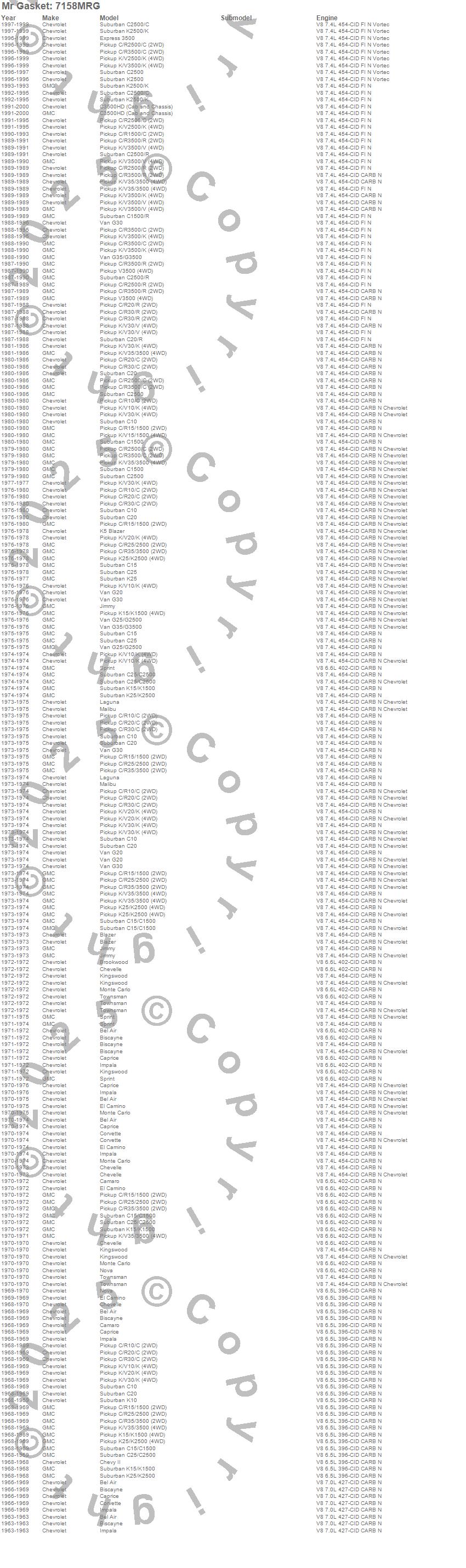 Bel Air, Biscayne, Blazer, Blazer K5, Brookwood, C10 Pickup, C10 Suburban, C15 Suburban, C15/C1500, C15/C1500 Suburban, C1500, C1500 Pickup, C1500 Suburban, C20 Pickup, C20 Suburban, C25 Suburban, C25/C2500 Pickup, C25/C2500 Suburban, C2500 Pickup, C2500 Suburban more…