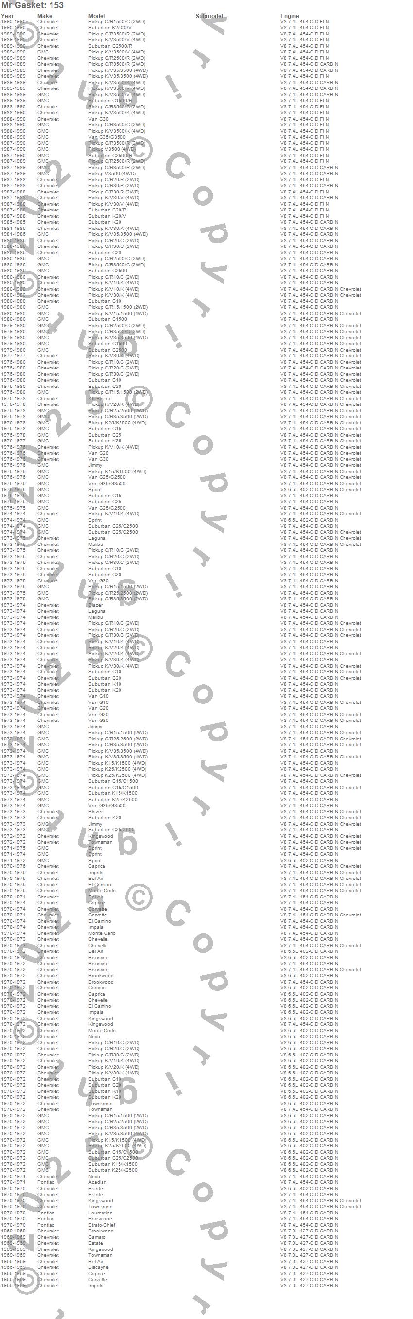 Mr. Gasket Exhaust Gasket Set 153 Features: