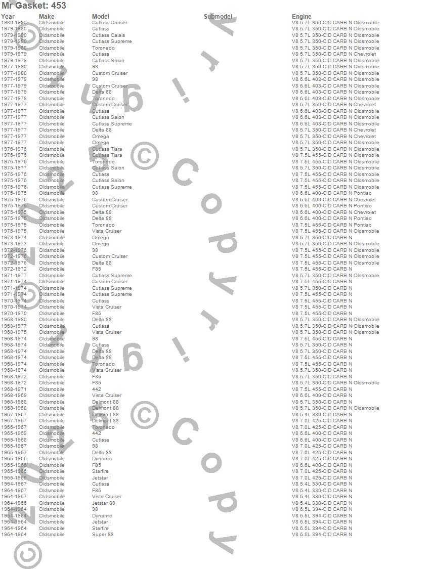 Mr. Gasket Exhaust Gasket Set 453 Features: