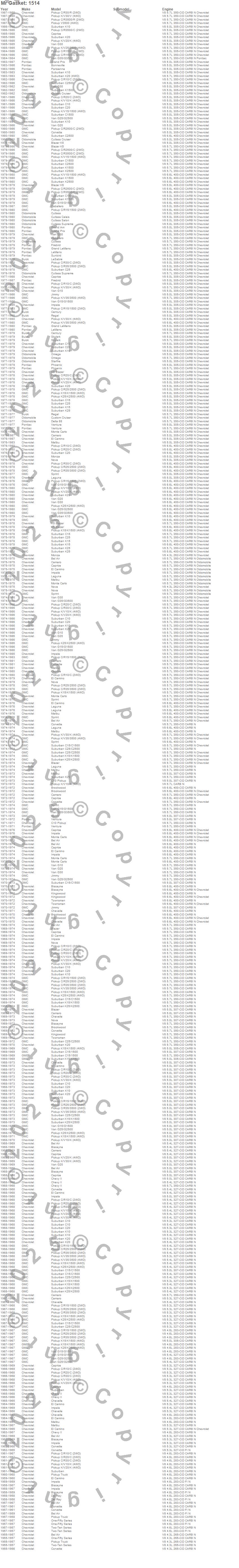 Bel Air, Biscayne, Blazer, Blazer K5, Bonneville, Brookwood, C10 Pickup, C10 Suburban, C15 Suburban, C15/C1500, C15/C1500 Suburban, C1500, C1500 Suburban, C20 Pickup, C20 Suburban, C25 Suburban, C25/C2500 Pickup, C25/C2500 Suburban, C2500 Pickup, C2500 Suburban more…