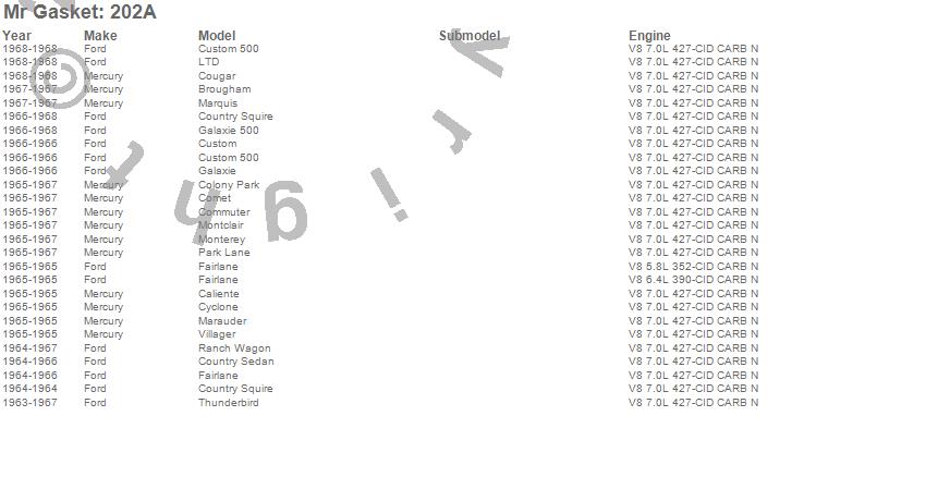Below is an abreviated list of applications for the Intake Gasket.