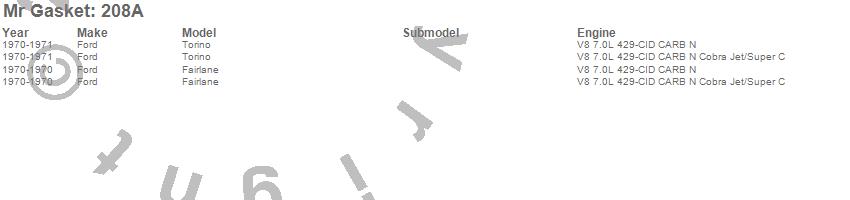 Below is an abreviated list of applications for the Intake Gasket.