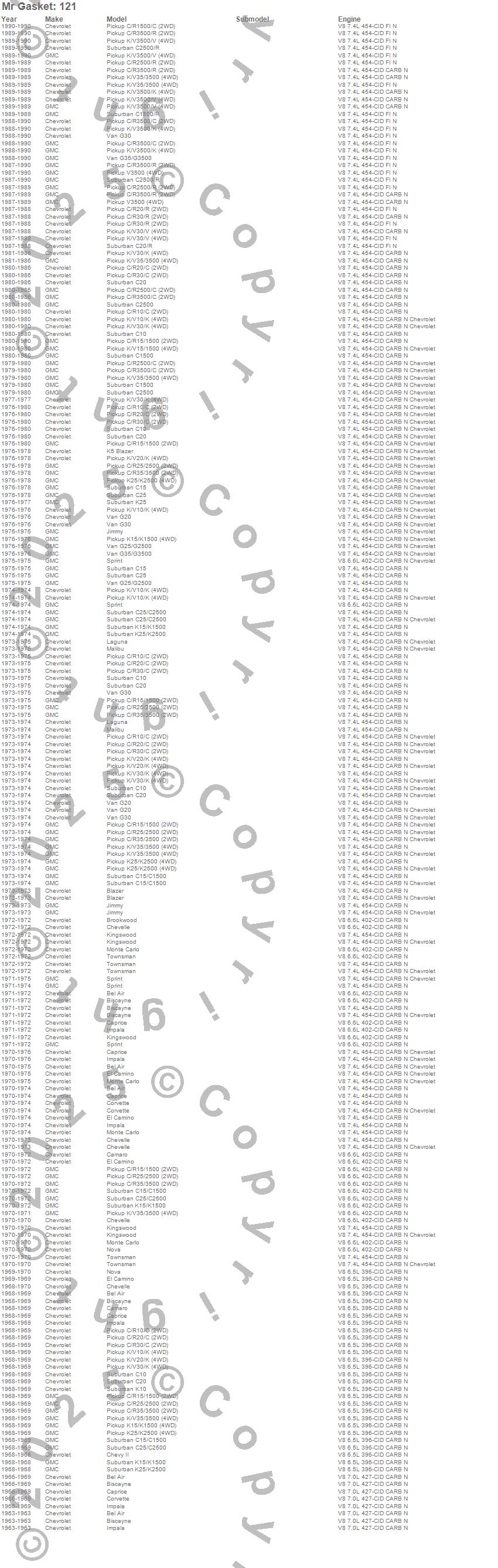 Below is an abreviated list of applications for the Intake Gasket.