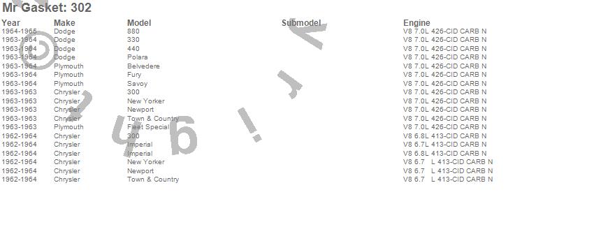 300, 330, 440, 880, Belvedere, Custom, Fleet Special, Fury, Imperial, New Yorker, Newport, Polara, Savoy, Town & Country, Chrysler, Dodge, Plymouth, 1964, 1963, 1962 more…