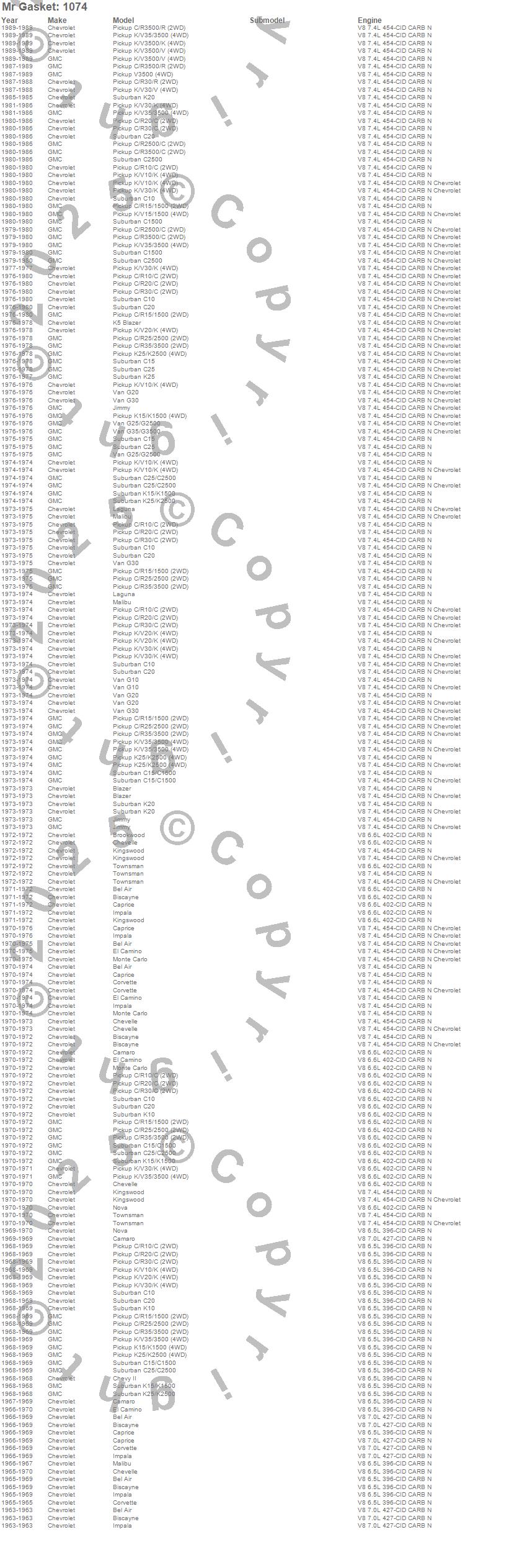 Bel Air, Biscayne, Blazer, Blazer K5, Brookwood, C10 Pickup, C10 Suburban, C15 Suburban, C15/C1500, C15/C1500 Suburban, C1500, C1500 Suburban, C20 Pickup, C20 Suburban, C25 Suburban, C25/C2500 Pickup, C25/C2500 Suburban, C2500 Pickup, C2500 Suburban, C30 Pickup more…