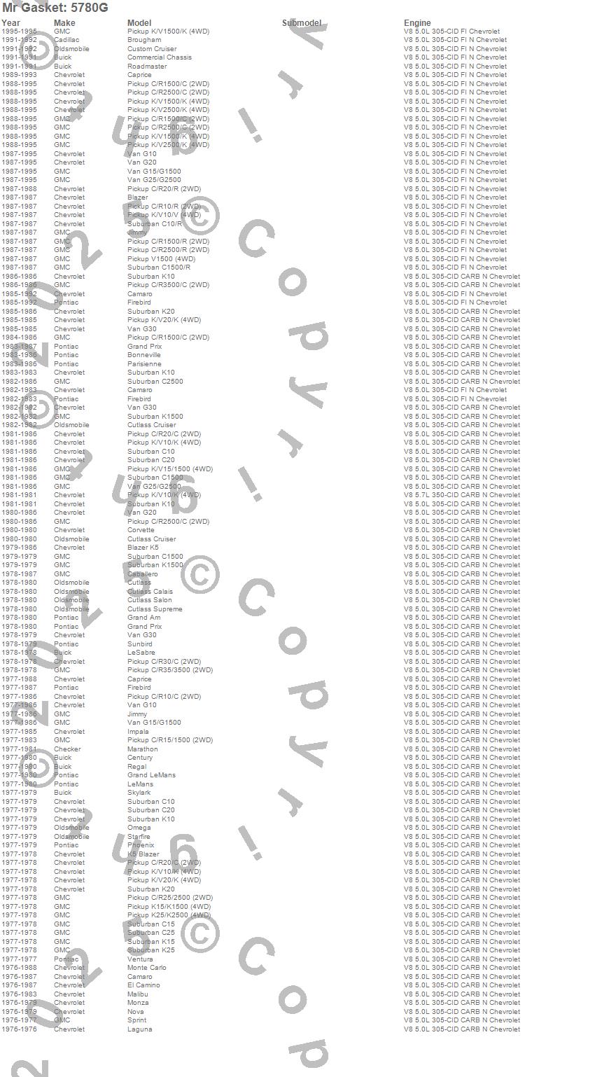 Below is an abreviated list of applications for the Ultra Seal Head Gasket.