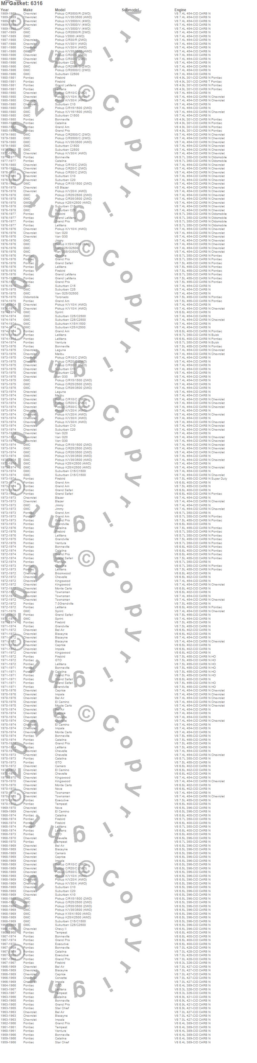 Bel Air, Biscayne, Blazer, Blazer K5, Bonneville, Brookwood, C10 Pickup, C10 Suburban, C15 Suburban, C15/C1500, C15/C1500 Suburban, C1500, C1500 Suburban, C20 Pickup, C20 Suburban, C25 Suburban, C25/C2500 Pickup, C25/C2500 Suburban, C2500 Pickup, C2500 Suburban more…