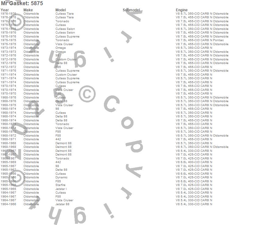 Below is an abreviated list of applications for the Ultra Seal Valve Cover Gasket Set.