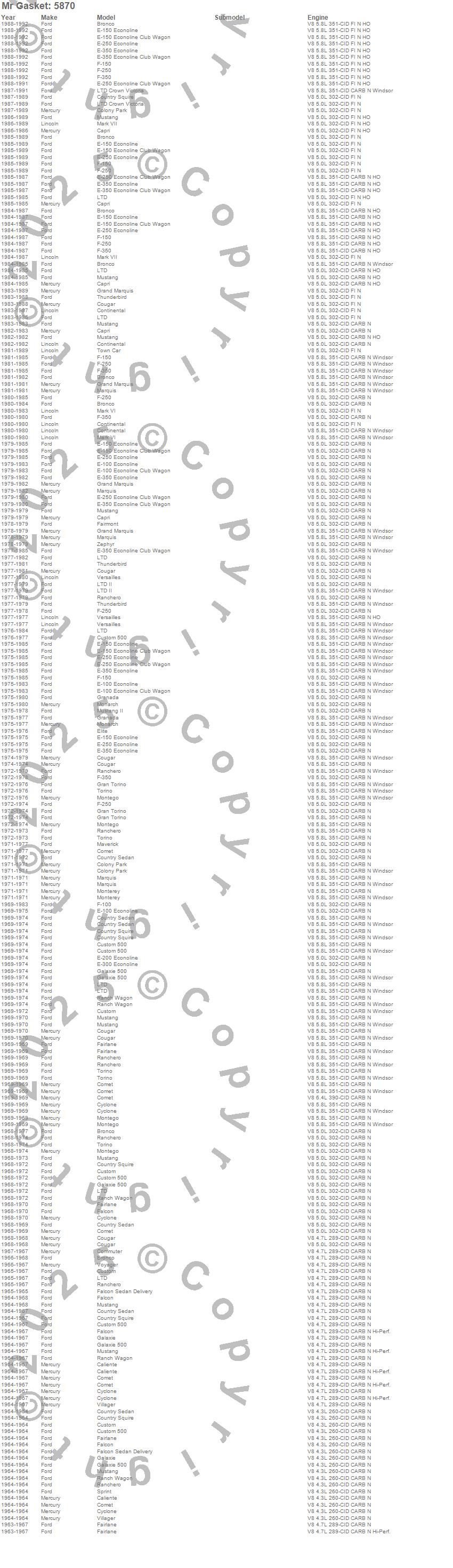Bronco, Caliente, Capri, Club Cargo, Colony Park, Comet, Commuter, Continental, Cougar, Country Sedan, Country Squire, Custom, Custom 500, Cyclone, E-100 Econoline, E-100 Econoline Club Wagon, E-150 Econoline, E-150 Econoline Club Wagon, E-200 Econoline, E-250 Econoline more…