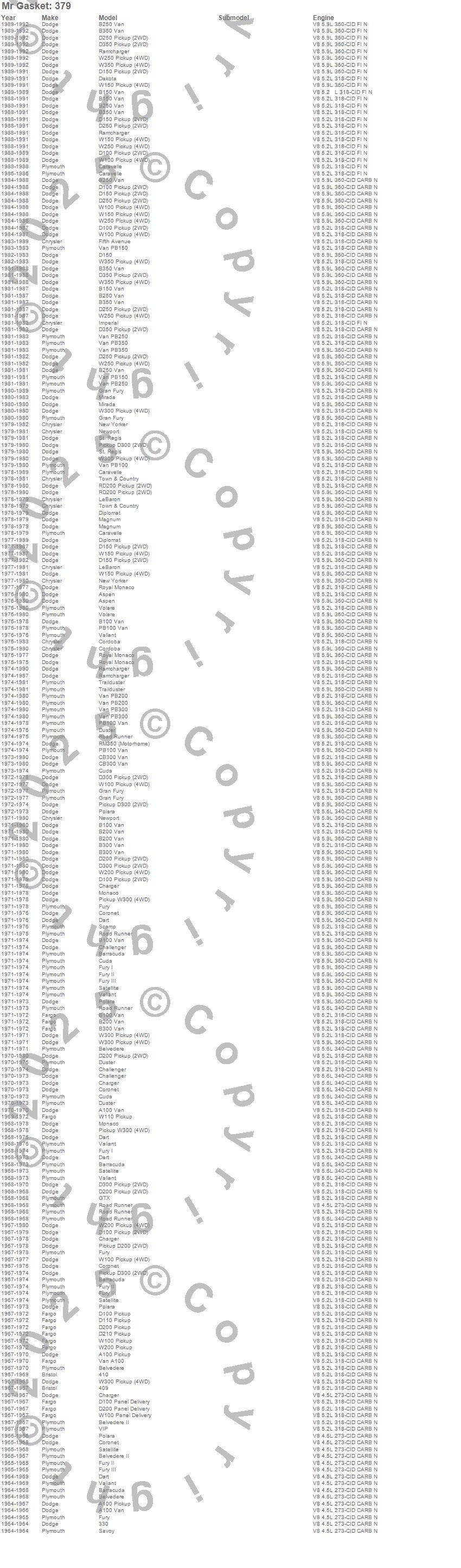 Mr. Gasket Valve Cover Gasket Set 379 Features: